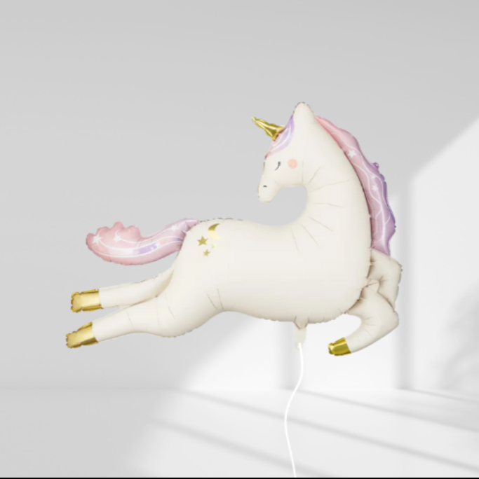 Skap en magisk stemning med denne vakre enhjørning folieballongen i myke pastellfarger og elegante gulldetaljer. Den grasiøse designen gjør den ideell til bursdager, babyshower, dåp eller enhjørning-tema – en ekte blikkfanger som sprer eventyr og glede i rommet!