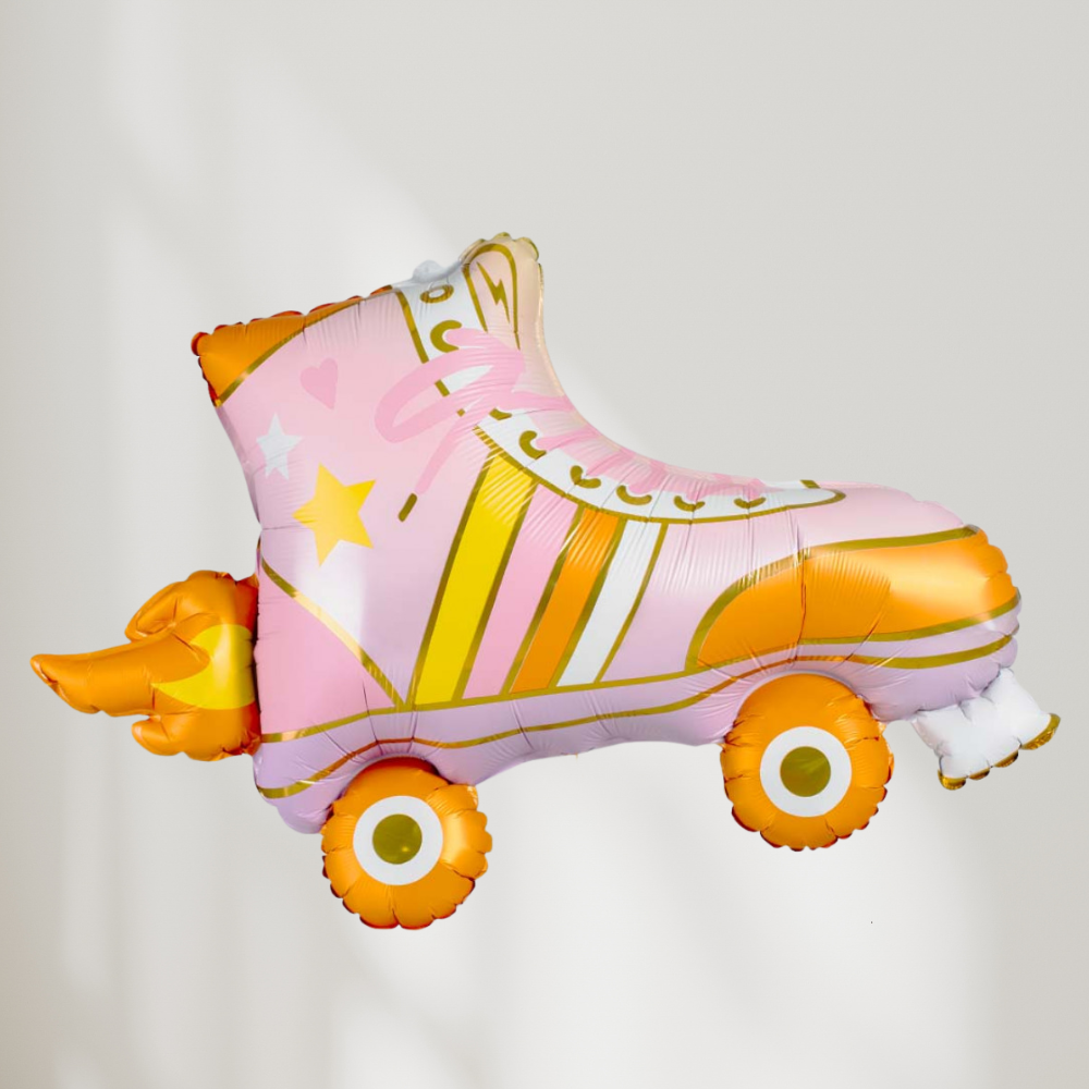 Gi festen et lekent og nostalgisk uttrykk med denne herlige rulleskøyteballongen! Den friske kombinasjonen av rosa, oransje og gylne detaljer gjør den perfekt til discofest, bursdag, sommerfeiring eller temaarrangementer med retro-inspirert look.
