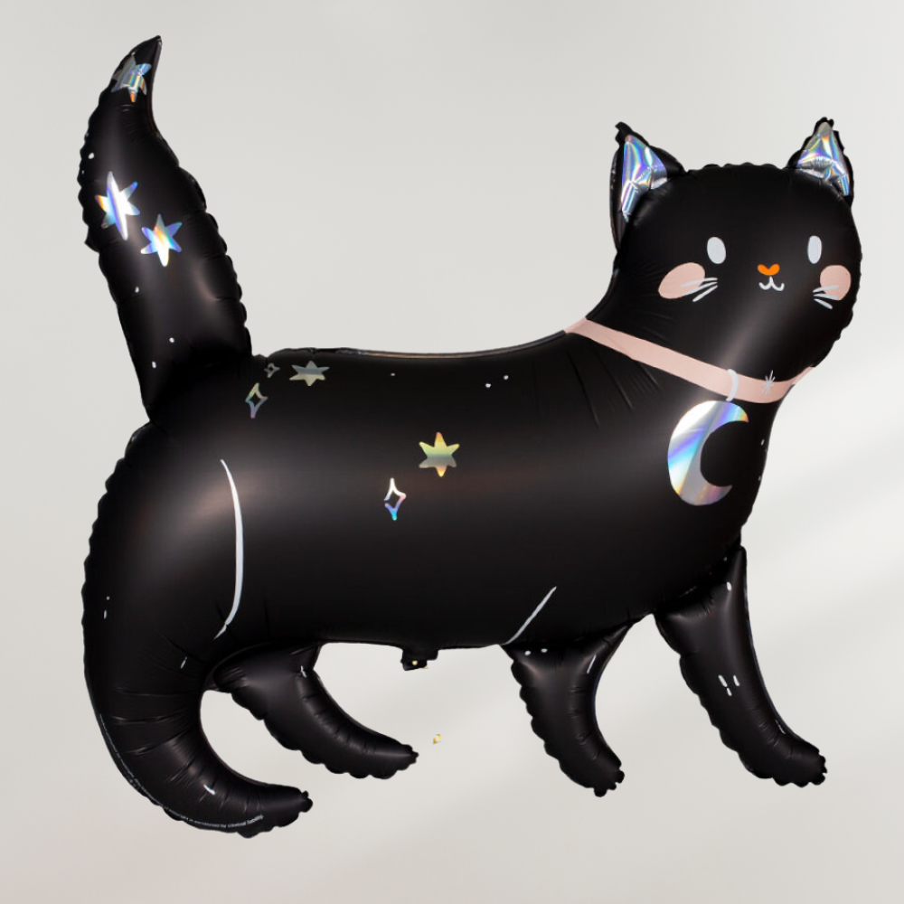 En nydelig svart katteballong med glitrende stjerner og månemotiv – perfekt til Halloween, bursdag eller magiske temafester! Den kombinerer det mystiske med det søte og passer like godt som dekorasjon i festlokalet som gave til en katteelsker.